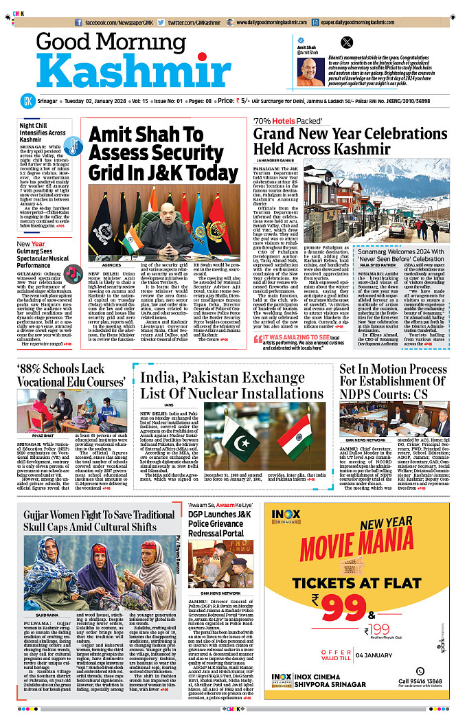 GMK, January, 02 2024 Good Morning Kashmir Page 1Page 2Page 3Page 4Page 5Page 6Page 7Page 8 × GMK, January, 02 2024 Full PDF << First << 1 2 3 4 >> Last >> 12345678