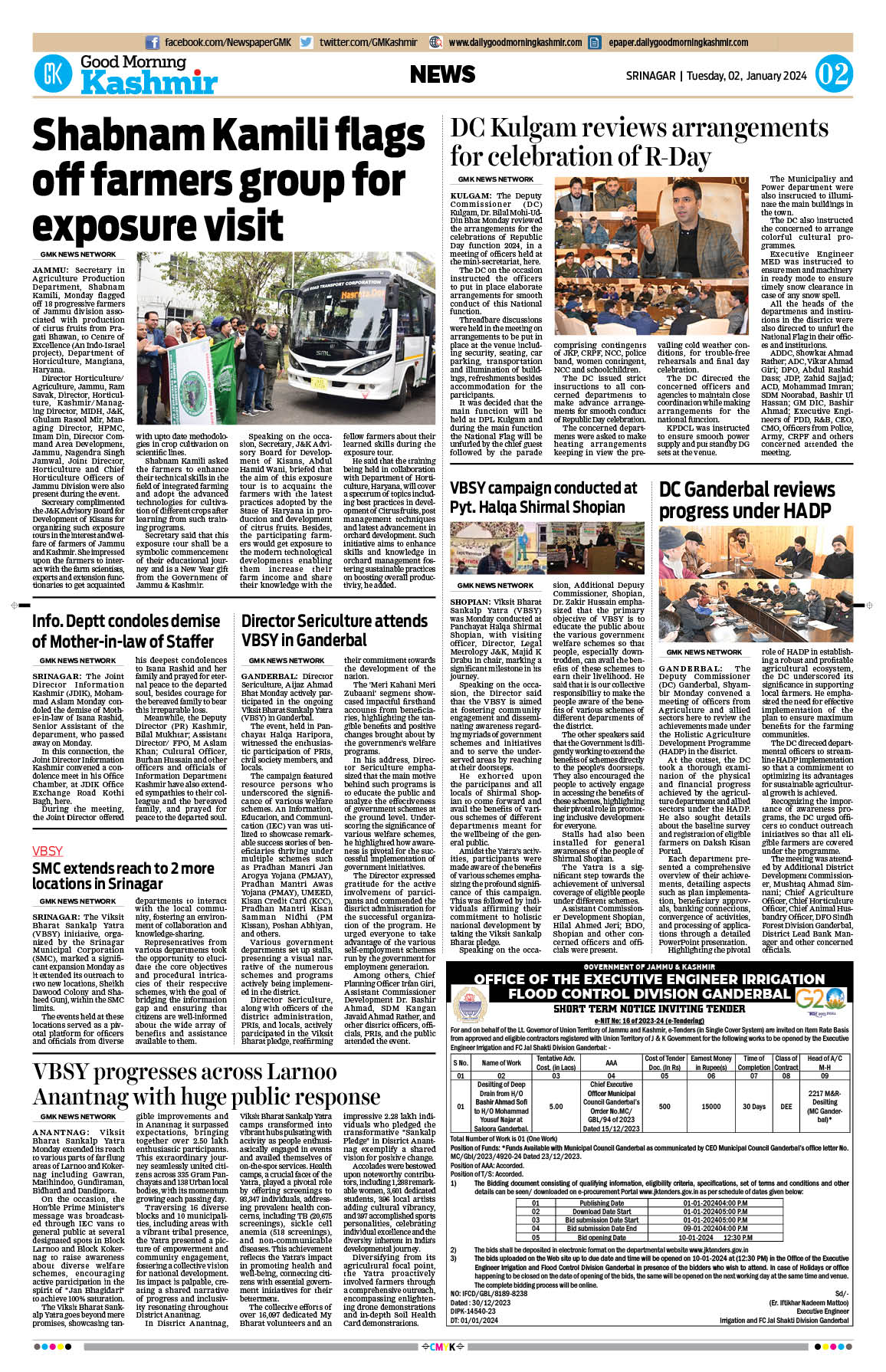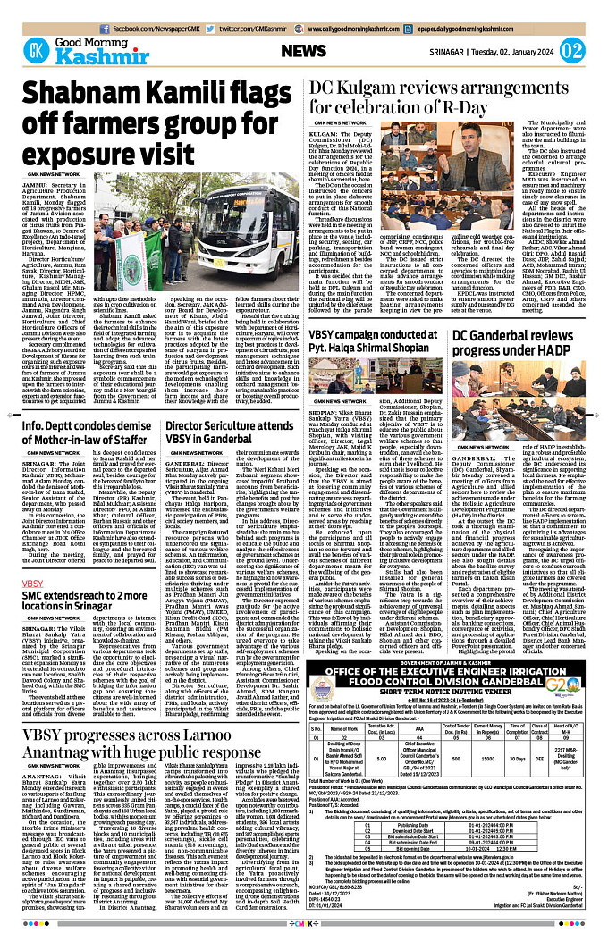 GMK, January, 02 2024 Page: 2 Good Morning Kashmir Page 1Page 2Page 3Page 4Page 5Page 6Page 7Page 8 × GMK, January, 02 2024 Full PDF << First << 1 2 3 4 >> Last >> 12345678