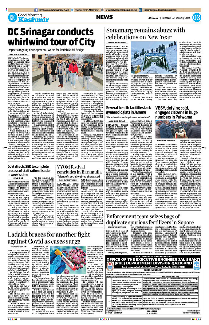 GMK, January, 02 2024 Page: 3 Good Morning Kashmir Page 1Page 2Page 3Page 4Page 5Page 6Page 7Page 8 × GMK, January, 02 2024 Full PDF << First << 1 2 3 4 >> Last >> 12345678