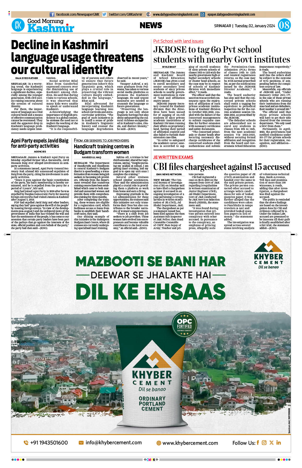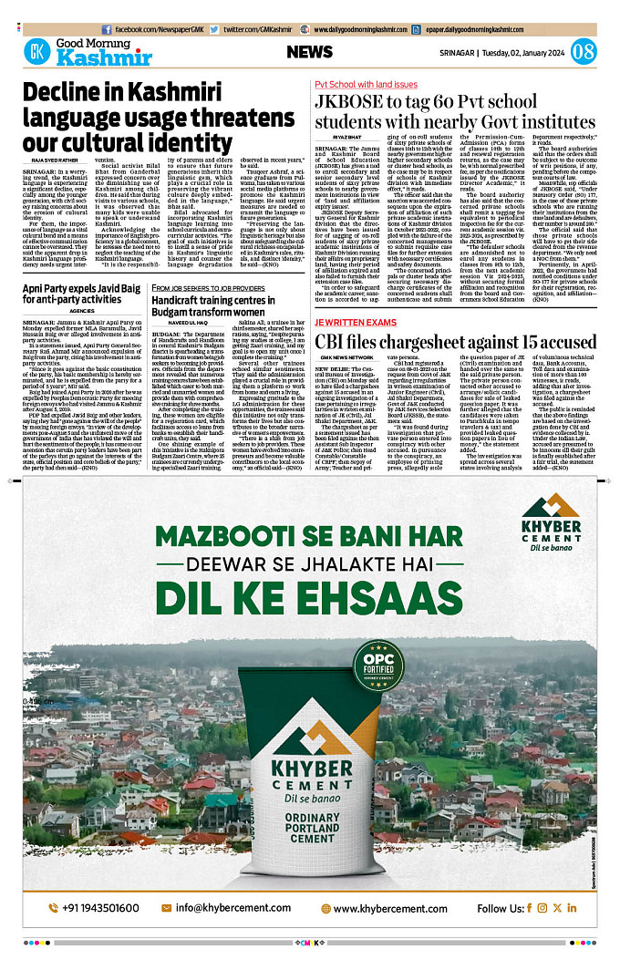 GMK, January, 02 2024 Page: 8 Good Morning Kashmir Page 1Page 2Page 3Page 4Page 5Page 6Page 7Page 8 × GMK, January, 02 2024 Full PDF << First << 5 6 7 8 >> Last >> 12345678