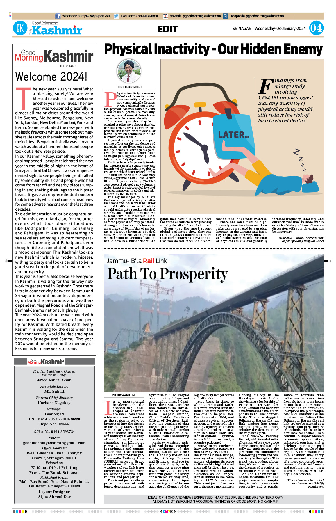 GMK, January, 03 2024 Page: 4 Good Morning Kashmir Page 1Page 2Page 3Page 4Page 5Page 6Page 7Page 8 × GMK, January, 03 2024 Full PDF << First << 2 3 4 5 >> Last >> 12345678