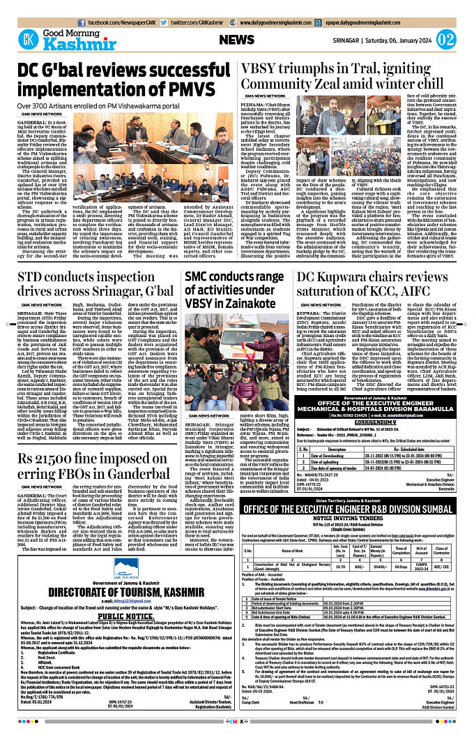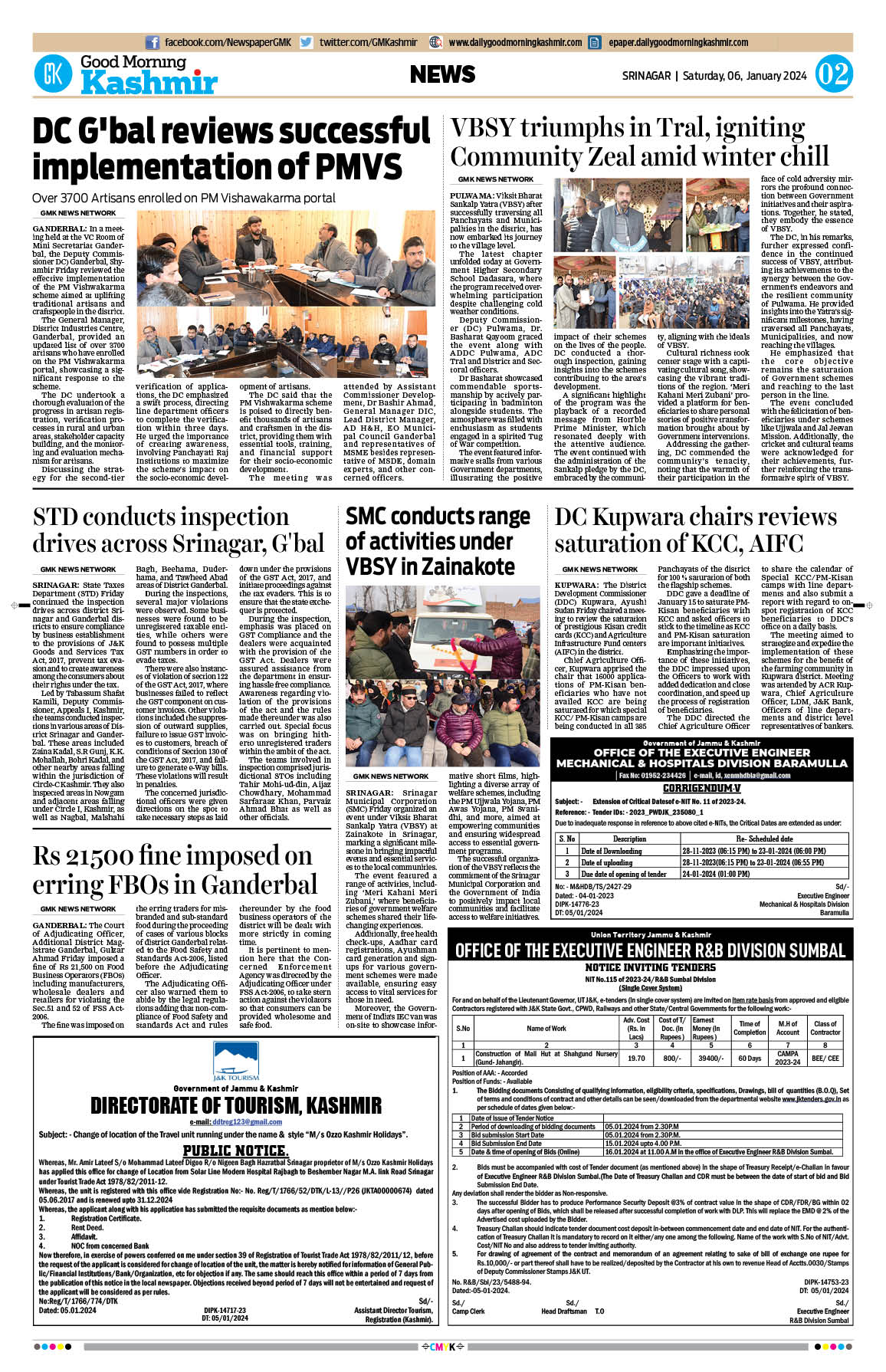 GMK, January, 06 2024 Page: 2 Good Morning Kashmir Page 1Page 2Page 3Page 4Page 5Page 6Page 7Page 8 × GMK, January, 06 2024 Full PDF << First << 1 2 3 4 >> Last >> 12345678