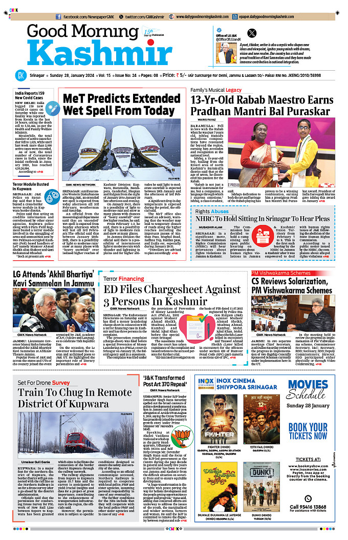 GMK, January, 28 2024 Good Morning Kashmir Page 1Page 2Page 3Page 4Page 5Page 6Page 7Page 8 × GMK, January, 28 2024 Full PDF << First << 1 2 3 4 >> Last >> 12345678