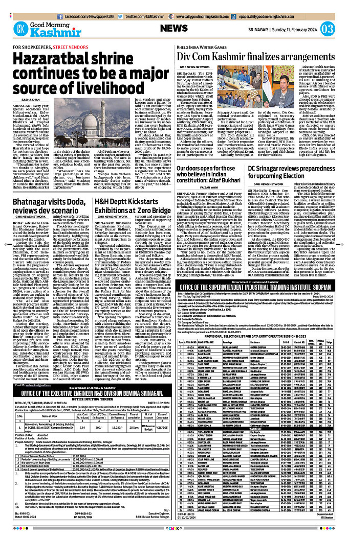 GMK, February, 11 2024 Page: 3 Good Morning Kashmir Page 1Page 2Page 3Page 4Page 5Page 6Page 7Page 8 × GMK, February, 11 2024 Full PDF << First << 1 2 3 4 >> Last >> 12345678