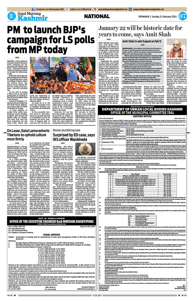 GMK, February, 11 2024 Page: 7 Good Morning Kashmir Page 1Page 2Page 3Page 4Page 5Page 6Page 7Page 8 × GMK, February, 11 2024 Full PDF << First << 5 6 7 8 >> Last >> 12345678