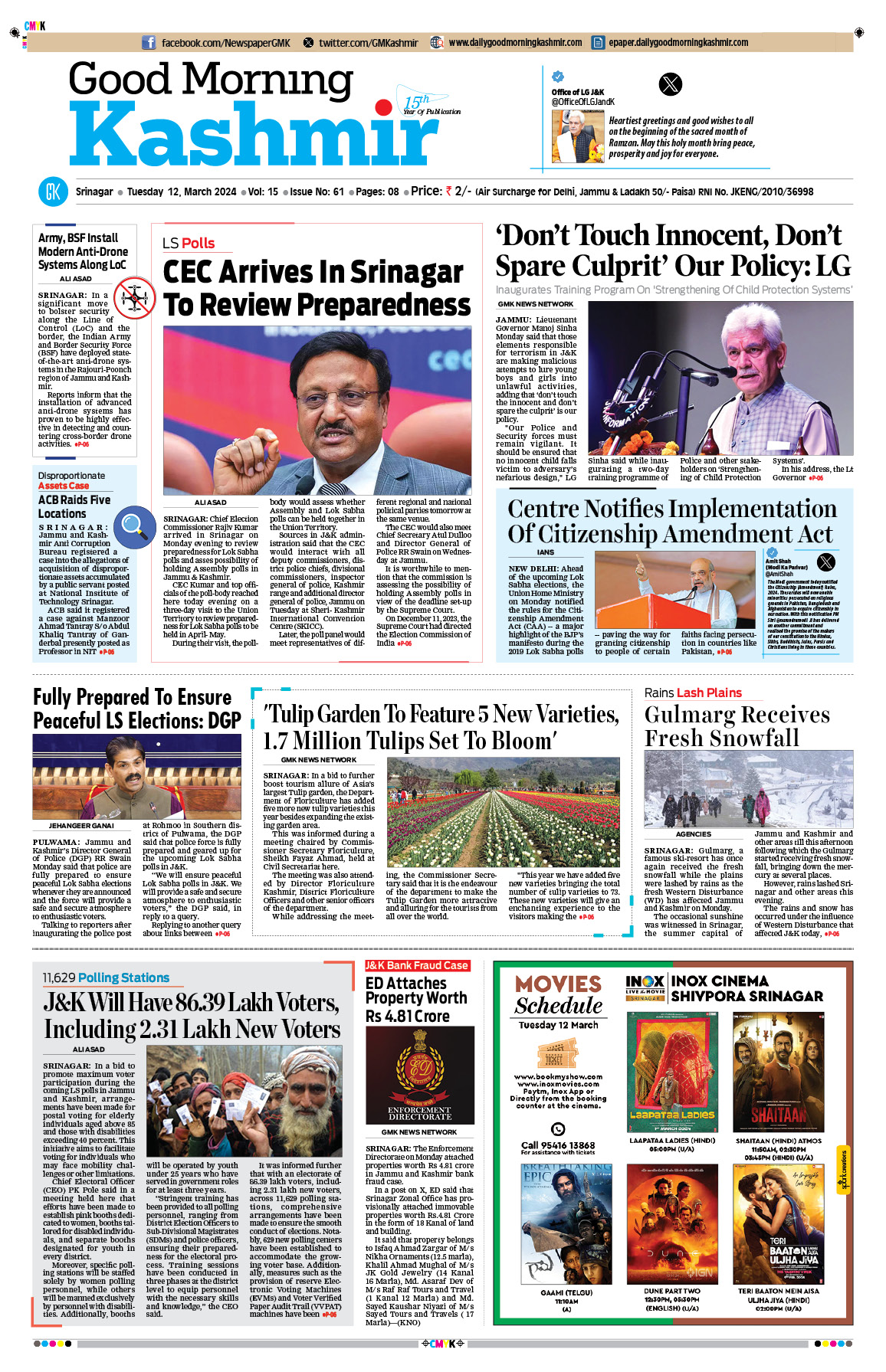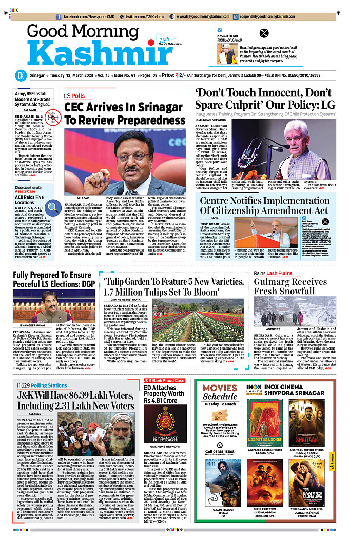 GMK, March, 12 2024 Good Morning Kashmir Page 1Page 2Page 3Page 4Page 5Page 6Page 7Page 8 × GMK, March, 12 2024 Full PDF << First << 1 2 3 4 >> Last >> 12345678
