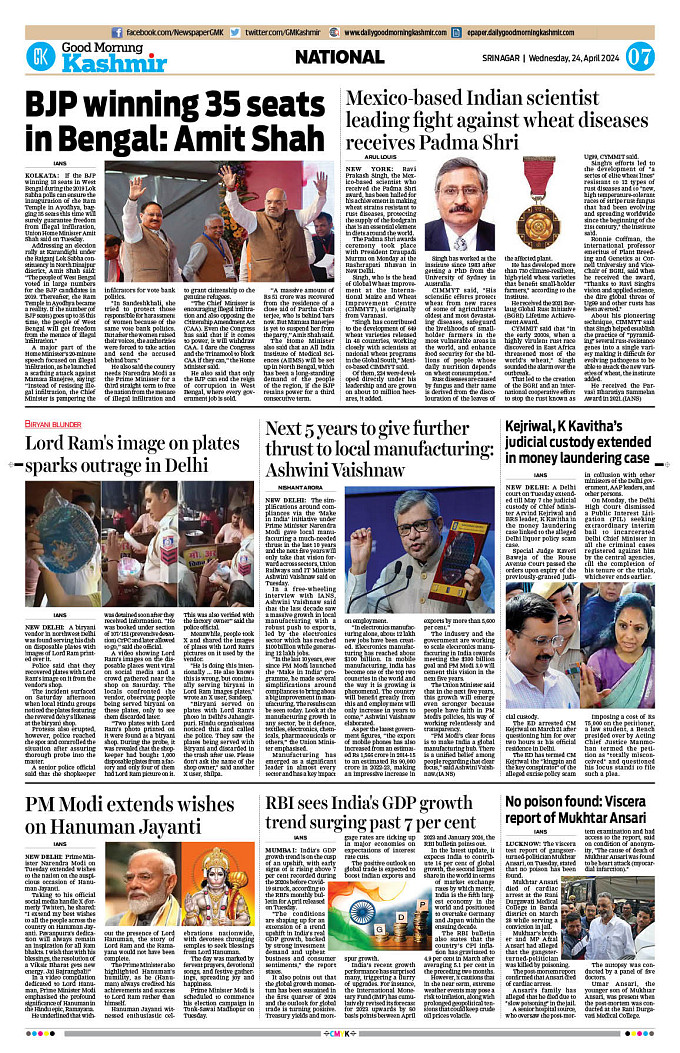 GMK, April, 24 2024 Page: 7 Good Morning Kashmir Page 1Page 2Page 3Page 4Page 5Page 6Page 7Page 8 × GMK, April, 24 2024 Full PDF << First << 5 6 7 8 >> Last >> 12345678