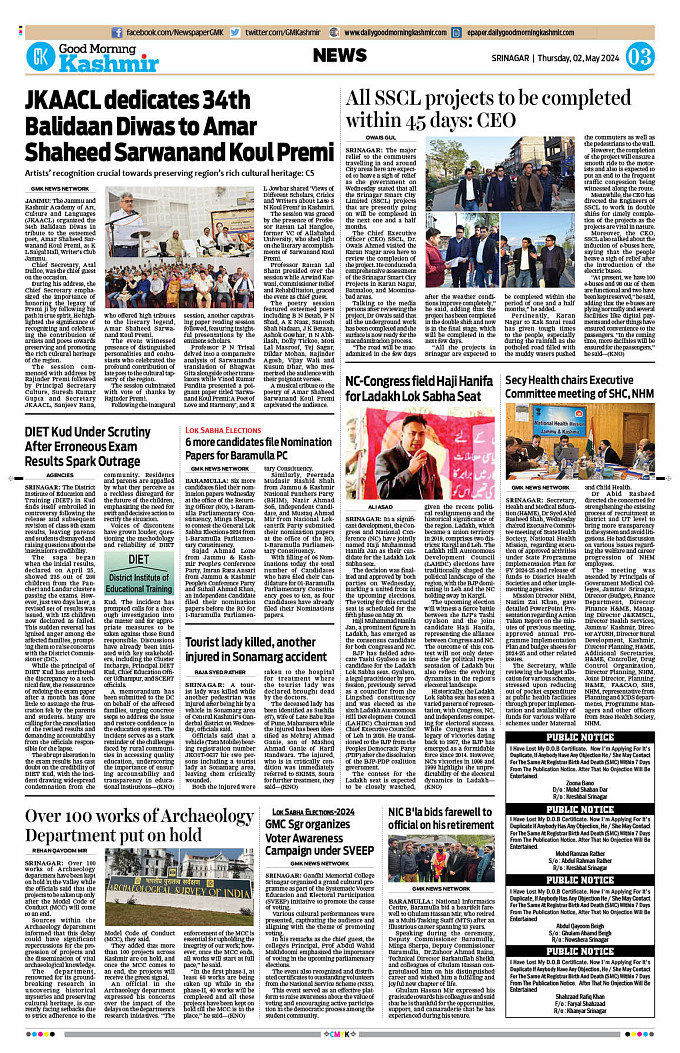 GMK, May, 02 2024 Page: 3 Good Morning Kashmir Page 1Page 2Page 3Page 4Page 5Page 6Page 7Page 8 × GMK, May, 02 2024 Full PDF << First << 1 2 3 4 >> Last >> 12345678