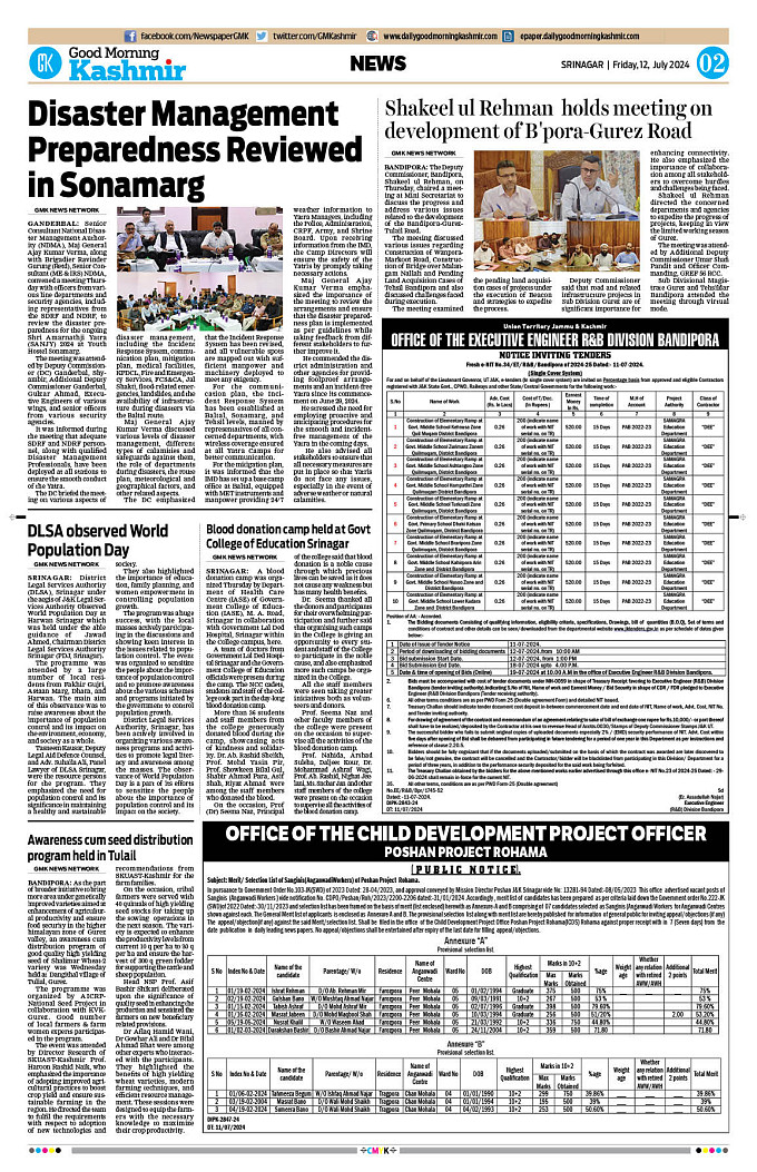 GMK, July, 12 2024 Page: 2 Good Morning Kashmir Page 1Page 2Page 3Page 4Page 5Page 6Page 7Page 8 × GMK, July, 12 2024 Full PDF << First << 1 2 3 4 >> Last >> 12 345678