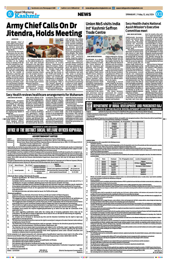 GMK, July, 12 2024 Page: 3 Good Morning Kashmir Page 1Page 2Page 3Page 4Page 5Page 6Page 7Page 8 × GMK, July, 12 2024 Full PDF << First << 1 2 3 4 >> Last >> 12 345678