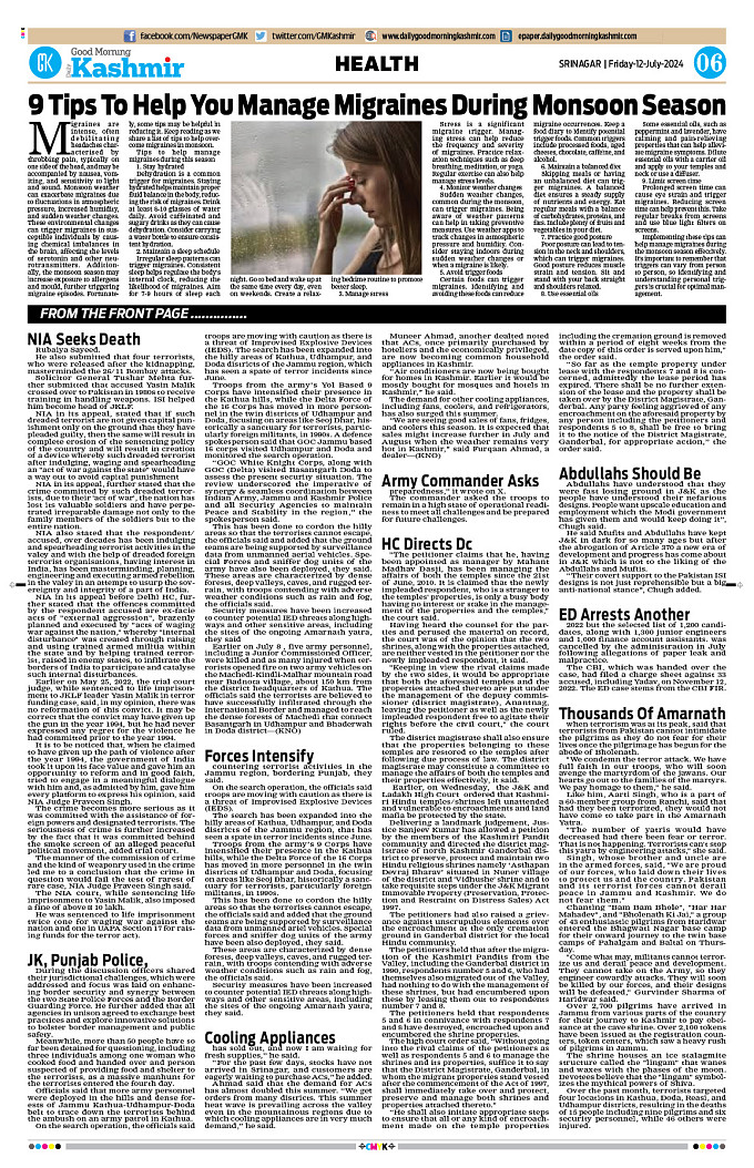 GMK, July, 12 2024 Page: 6 Good Morning Kashmir Page 1Page 2Page 3Page 4Page 5Page 6Page 7Page 8 × GMK, July, 12 2024 Full PDF << First << 4 5 6 7 >> Last >> 12 345678
