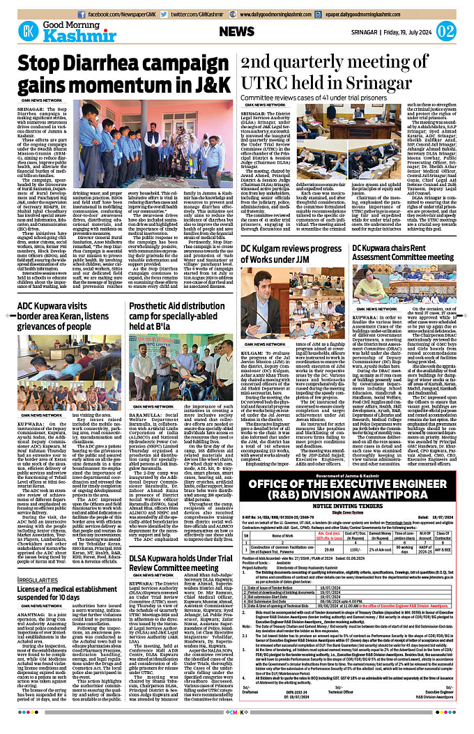 GMK, July, 19 2024 Page: 2 Good Morning Kashmir Page 1Page 2Page 3Page 4Page 5Page 6Page 7Page 8 × GMK, July, 19 2024 Full PDF << First << 1 2 3 4 >> Last >> 12 345678
