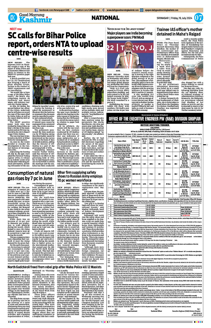 GMK, July, 19 2024 Page: 7 Good Morning Kashmir Page 1Page 2Page 3Page 4Page 5Page 6Page 7Page 8 × GMK, July, 19 2024 Full PDF << First << 5 6 7 8 >> Last >> 12 345678