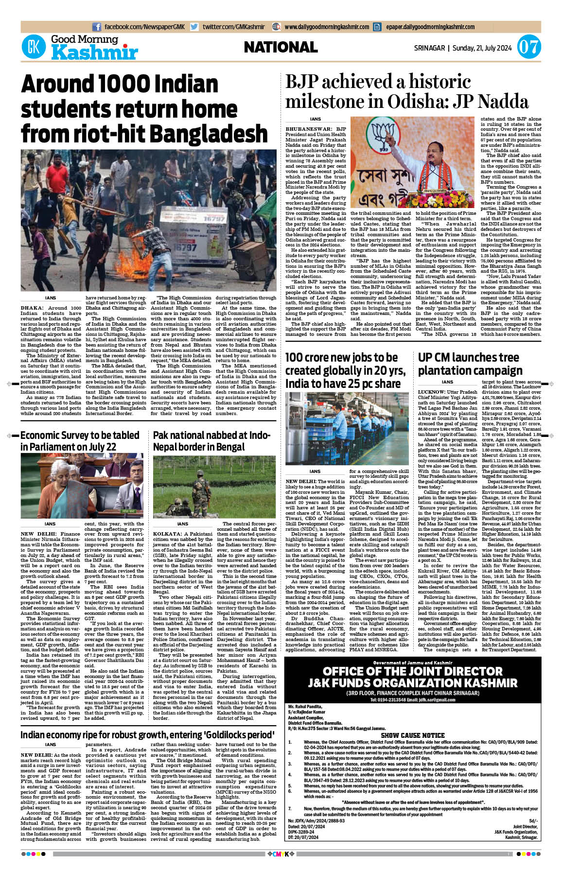 GMK, July, 21 2024 Page: 7 Good Morning Kashmir Page 1Page 2Page 3Page 4Page 5Page 6Page 7Page 8 × GMK, July, 21 2024 Full PDF << First << 5 6 7 8 >> Last >> 12 345678