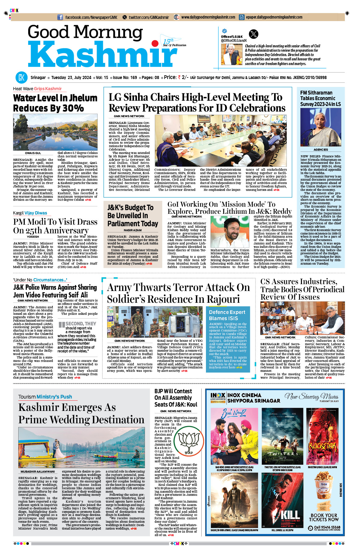GMK, July, 23 2024 Good Morning Kashmir Page 1Page 2Page 3Page 4Page 5Page 6Page 7Page 8 × GMK, July, 23 2024 Full PDF << First << 1 2 3 4 >> Last >> 12 345678