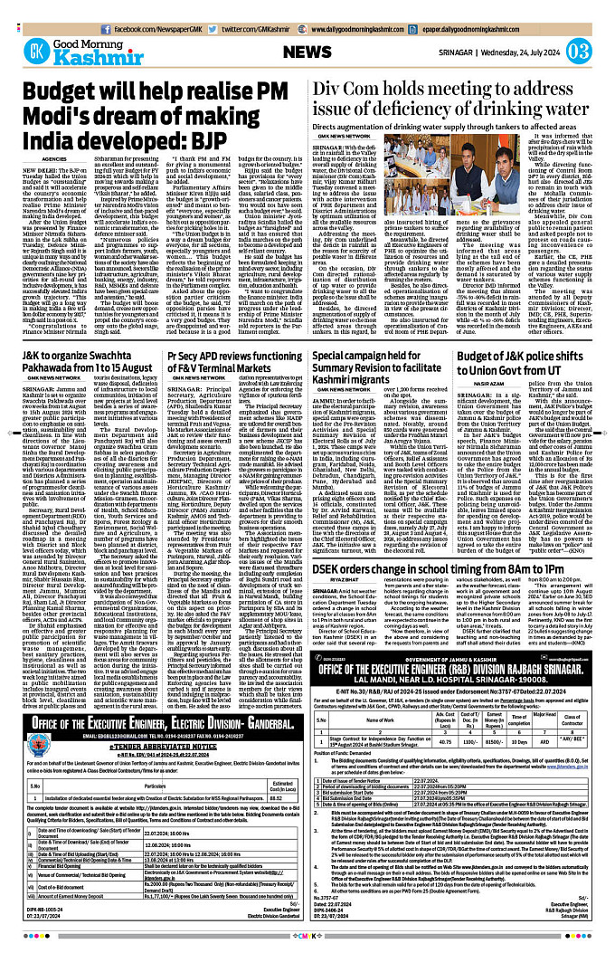 GMK, July, 24 2024 Page: 3 Good Morning Kashmir Page 1Page 2Page 3Page 4Page 5Page 6Page 7Page 8 × GMK, July, 24 2024 Full PDF << First << 1 2 3 4 >> Last >> 12 345678