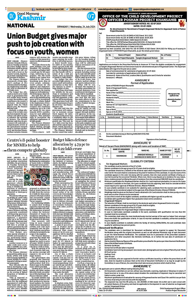 GMK, July, 24 2024 Page: 7 Good Morning Kashmir Page 1Page 2Page 3Page 4Page 5Page 6Page 7Page 8 × GMK, July, 24 2024 Full PDF << First << 5 6 7 8 >> Last >> 12 345678