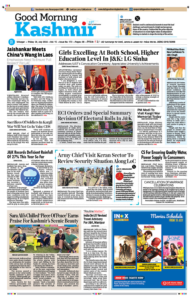 GMK, July, 26 2024 Good Morning Kashmir Page 1Page 2Page 3Page 4Page 5Page 6Page 7Page 8 × GMK, July, 26 2024 Full PDF << First << 1 2 3 4 >> Last >> 12 345678