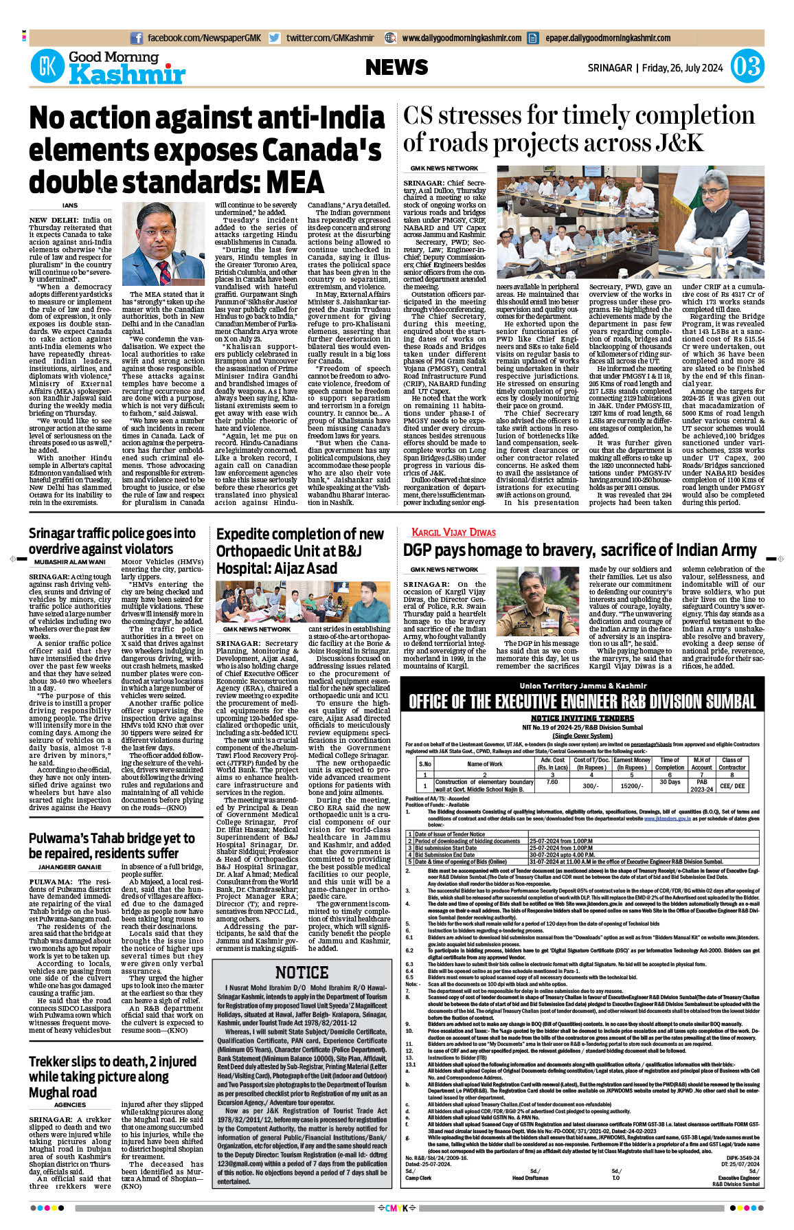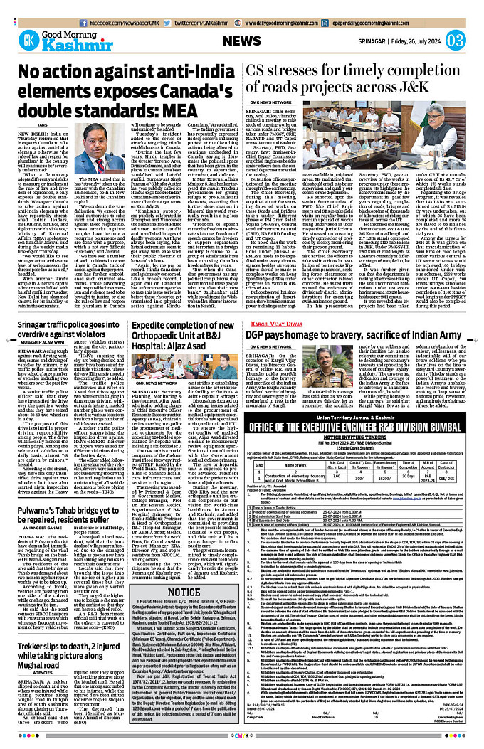GMK, July, 26 2024 Page: 3 Good Morning Kashmir Page 1Page 2Page 3Page 4Page 5Page 6Page 7Page 8 × GMK, July, 26 2024 Full PDF << First << 1 2 3 4 >> Last >> 12 345678