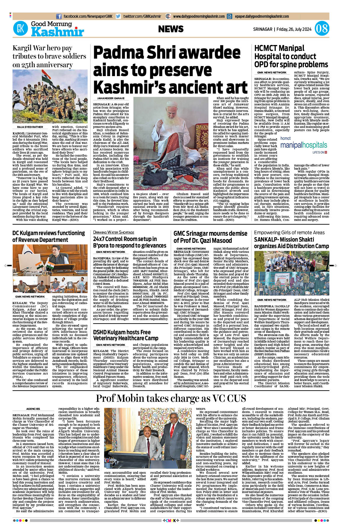 GMK, July, 26 2024 Page: 8 Good Morning Kashmir Page 1Page 2Page 3Page 4Page 5Page 6Page 7Page 8 × GMK, July, 26 2024 Full PDF << First << 5 6 7 8 >> Last >> 12 345678
