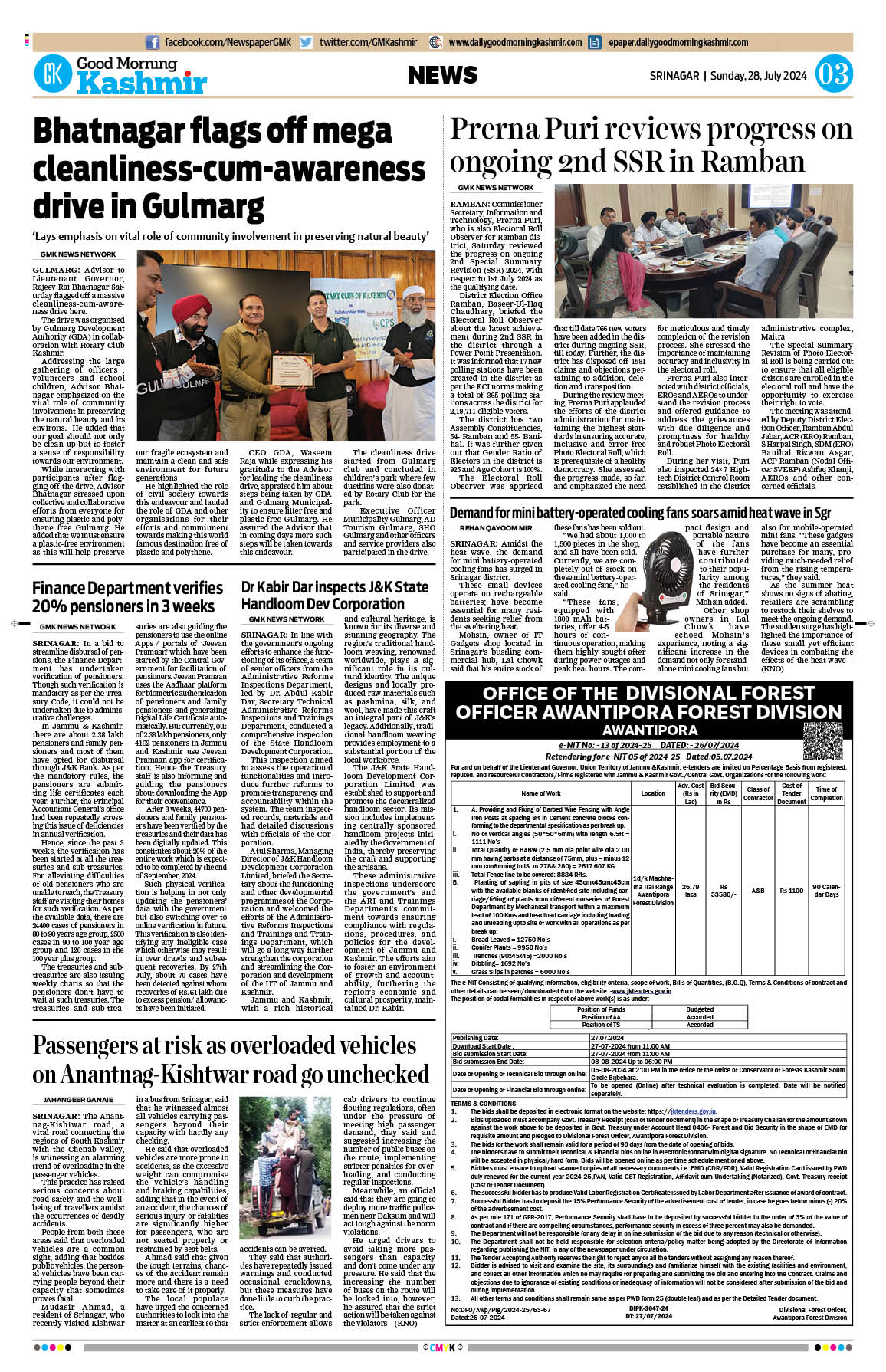 GMK, July, 28 2024 Page: 3 Good Morning Kashmir Page 1Page 2Page 3Page 4Page 5Page 6Page 7Page 8 × GMK, July, 28 2024 Full PDF << First << 1 2 3 4 >> Last >> 12 345678