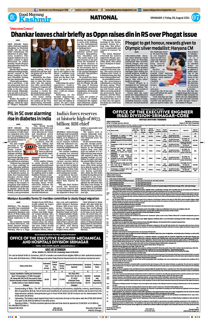 GMK, August, 09 2024 Page: 7 Good Morning Kashmir Page 1Page 2Page 3Page 4Page 5Page 6Page 7Page 8 × GMK, August, 09 2024 Full PDF << First << 5 6 7 8 >> Last >> 12 345678