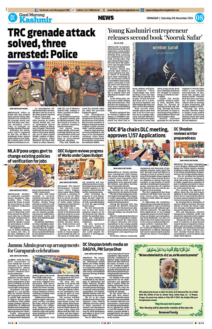 GMK, Nov, 09 2024 Page: 8 Good Morning Kashmir Page 1Page 2Page 3Page 4Page 5Page 6Page 7Page 8 × GMK, Nov, 09 2024 Full PDF << First << 5 6 7 8 >> Last >> 12345678