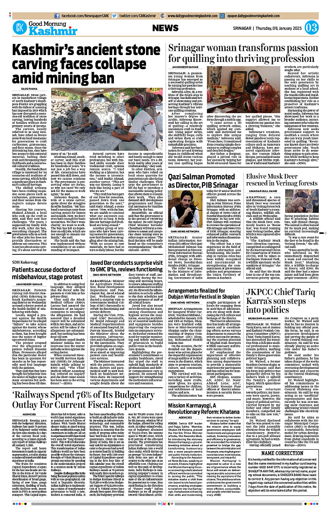 GMK, JAN, 09 2025 Page: 3 Today's Epaper Page 1Page 2Page 3Page 4Page 5Page 6Page 7Page 8 × GMK, JAN, 09 2025 Full PDF << First << 1 2 3 4 >> Last >> 12345678