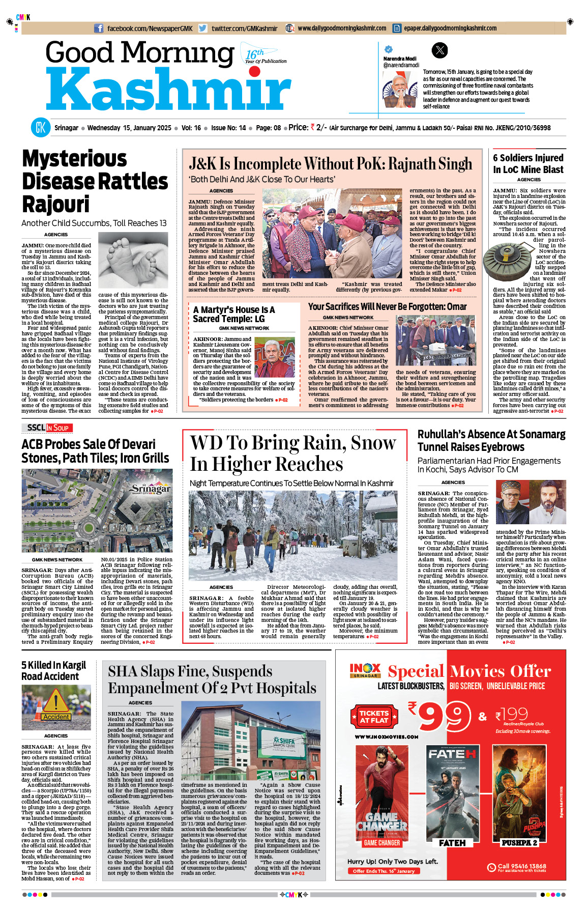 GMK, JAN, 15 2025 Good Morning Kashmir Page 1Page 2Page 3Page 4Page 5Page 6Page 7Page 8 × GMK, JAN, 15 2025 Full PDF << First << 1 2 3 4 >> Last >> 12345678