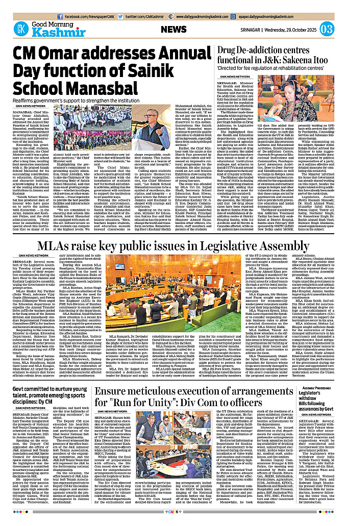 GMK, OCTOBER, 29 2025 Page: 3 Today's Epaper Page 1Page 2Page 3Page 4Page 5Page 6Page 7Page 8 × GMK, OCTOBER, 29 2025 Full PDF << First << 1 2 3 4 >> Last >> 123 45678