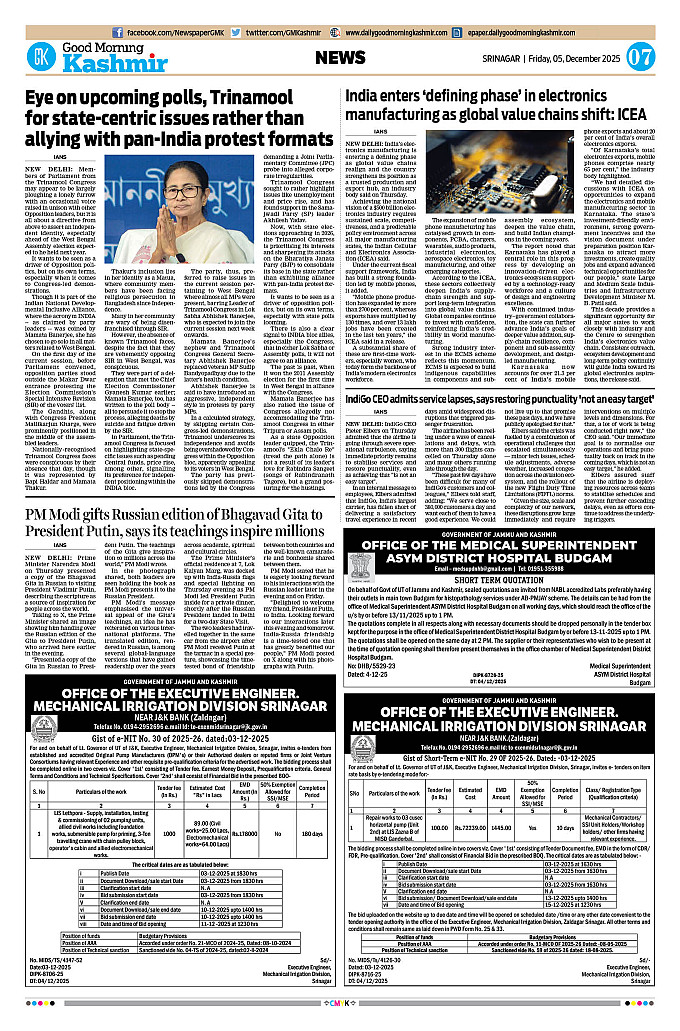 GMK, DECEMBER, 05 2025 Page: 7 Todays Epaper Page 1Page 2Page 3Page 4Page 5Page 6Page 7Page 8 × GMK, DECEMBER, 05 2025 Full PDF << First << 5 6 7 8 >> Last >> 123 45678