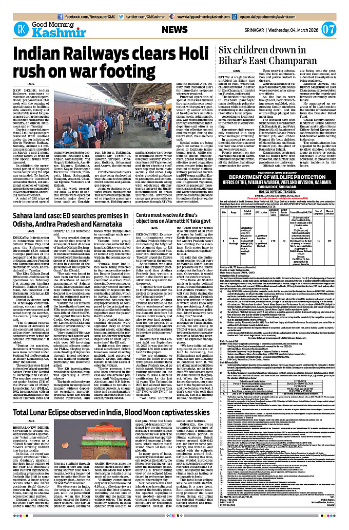 GMK, MARCH, 04 2026 Page: 7 Today's Epaper Page 1Page 2Page 3Page 4Page 5Page 6Page 7Page 8 × GMK, MARCH, 04 2026 Full PDF << First << 5 6 7 8 >> Last >> 12345678