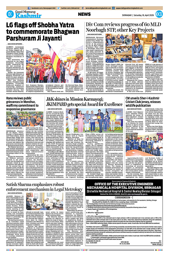 GMK, APRIL, 18 2026 Page: 3 Today's Epaper Page 1Page 2Page 3Page 4Page 5Page 6Page 7Page 8 × GMK, APRIL, 18 2026 Full PDF << First << 1 2 3 4 >> Last >> 12345678