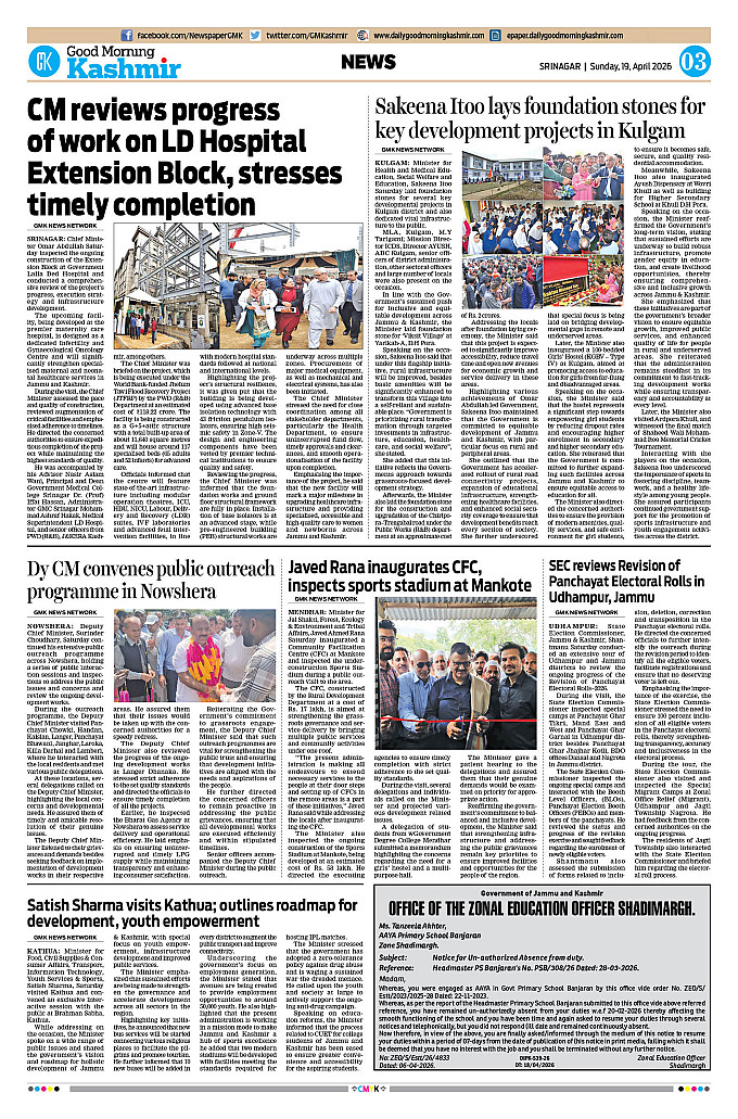 GMK, April, 19 2026 Page: 3 Today's Epaper Page 1Page 2Page 3Page 4Page 5Page 6Page 7Page 8 × GMK, April, 19 2026 Full PDF << First << 1 2 3 4 >> Last >> 12345678
